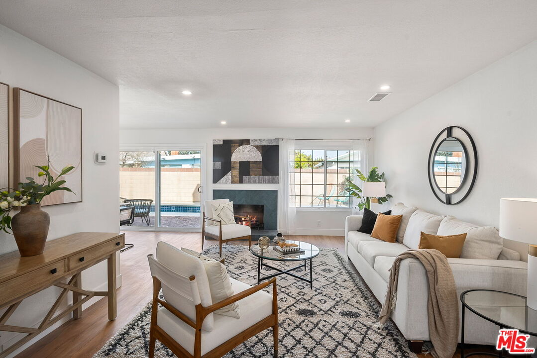 This beautifully reimagined 4-bedroom, 4-bathroom traditional-style home offers 2,048 sqft of living space with an additional bonus area featuring a chic fireplace, perfect for a home office or a 5th bedroom. Enter to a spacious living room with a fireplace, flowing effortlessly into the dining room with sliding glass doors leading to the backyard. The stunning kitchen boasts white cabinetry, a striking tile backsplash, and stainless steel appliances, opening to a secondary living area. Enjoy gorgeous bathrooms, including a spacious primary suite with a spa-like en suite featuring a floating sink vanity and a stunning tile shower. Outside, relax in the private backyard with a lap pool, ideal for al fresco dining and entertaining. Additional highlights include solar panels, a new roof, and a mature tree in the front yard enhancing the home's curb appeal. This home is a true gem in Carson!